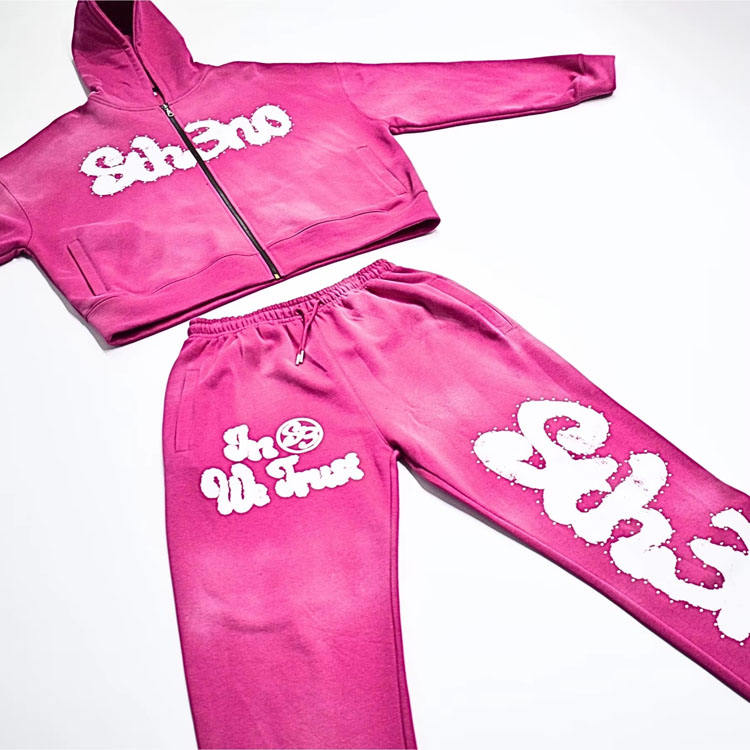 Dernier design, survêtements personnalisés imprimés en grande taille, logo imprimé en relief, survêtements unis, lavage au sable, respirant, coupe-vent, unisexe