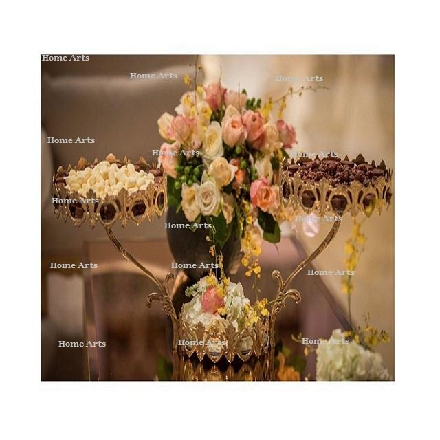 Latest design iron chocolates stand greatest quality gold color dessert stand from manufacturer in india