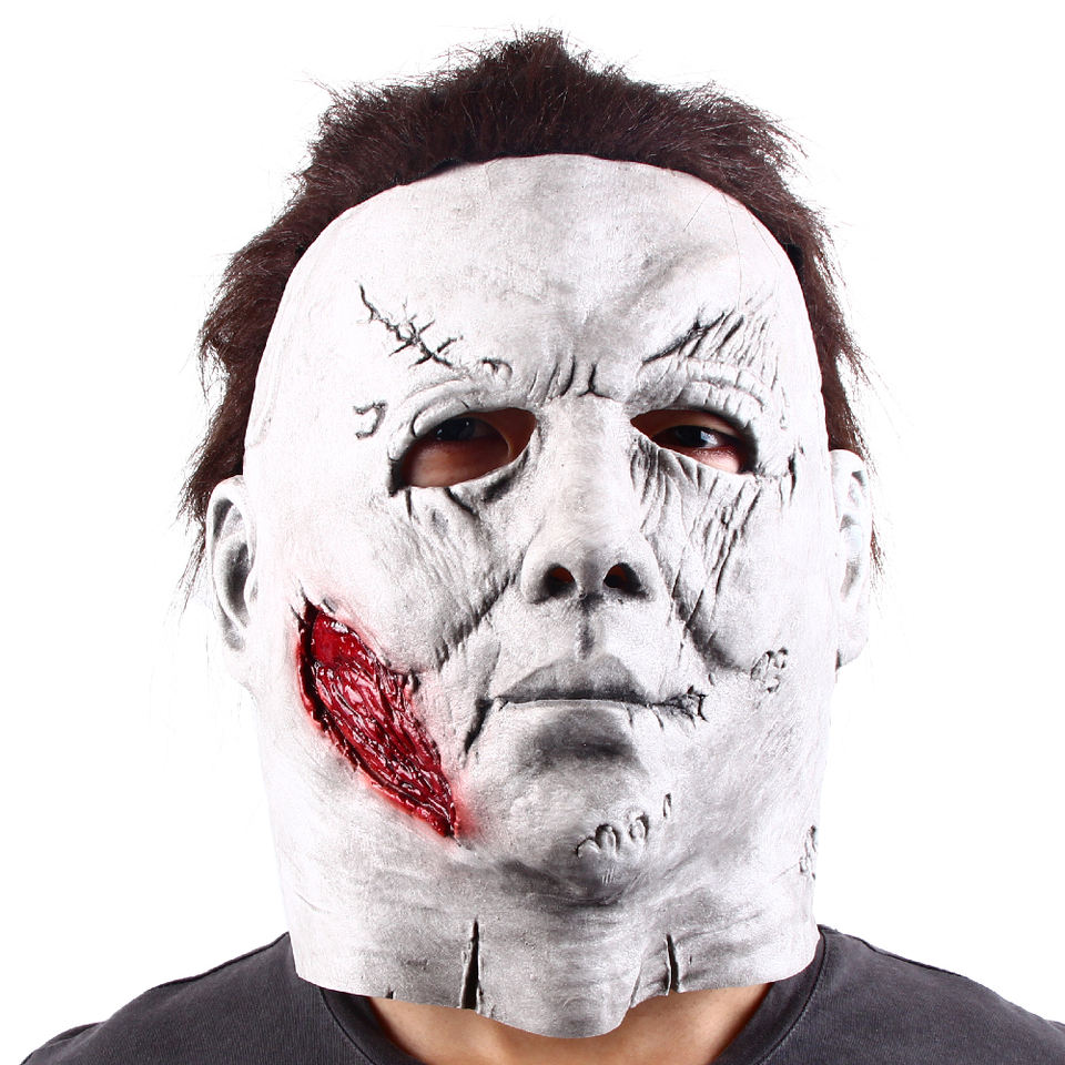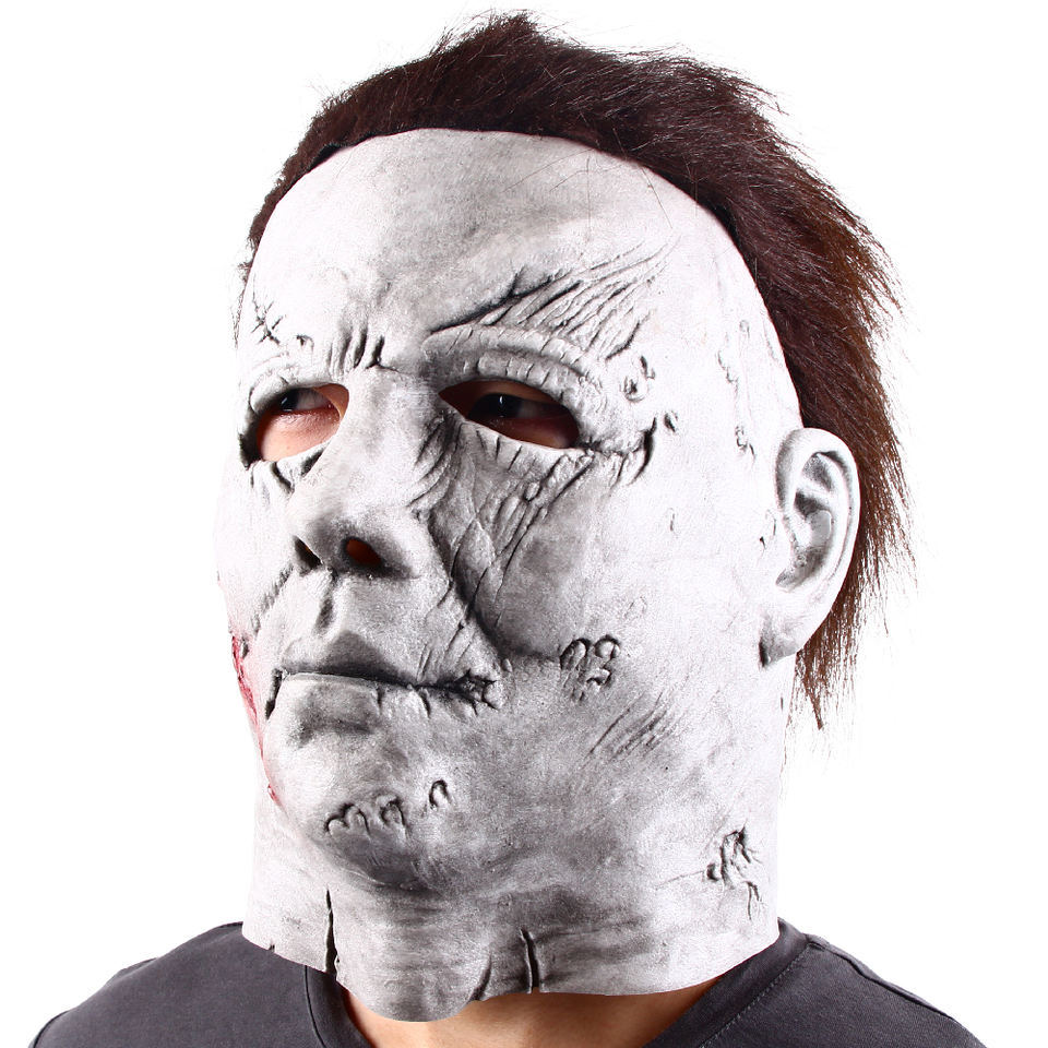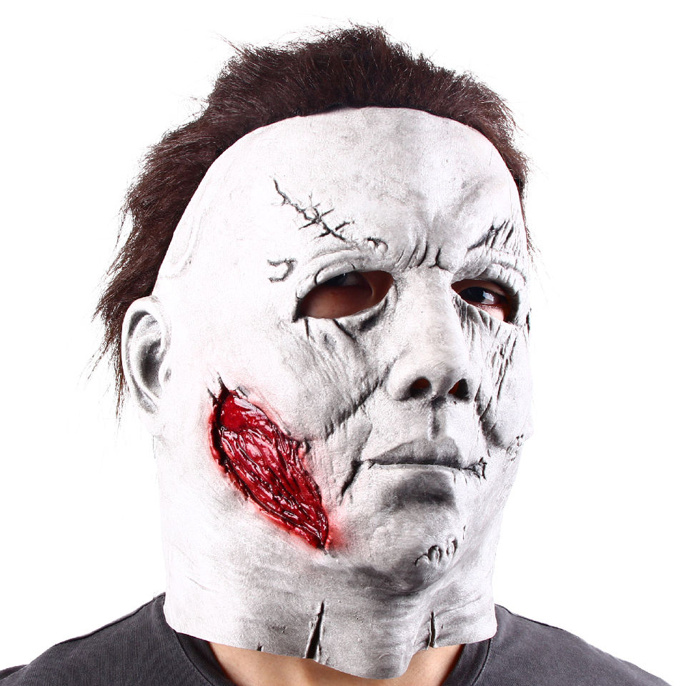Masque intégral en latex drôle et réaliste, peau pâle, éclaboussures de sang, cheveux foncés, pour Halloween, cosplay, fête costumée, performance scénique