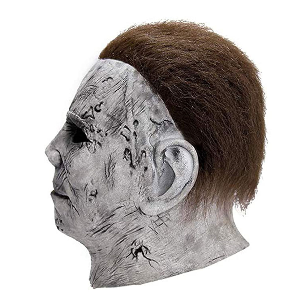 Masque intégral en latex drôle et amusant, peau pâle, fissures brunes, cheveux foncés désordonnés, texture réaliste et effrayante, doux et confortable pour fête d'Halloween