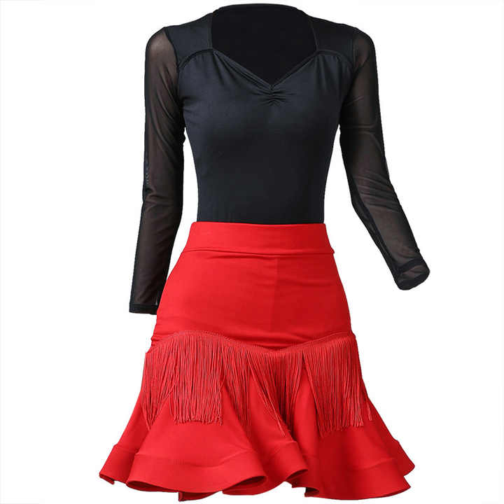 Robe de danse latine rouge avec jupe à franges en forme d'arête de poisson, idéale pour la pratique et les spectacles, tenue de danse à pampilles, jupe de danse