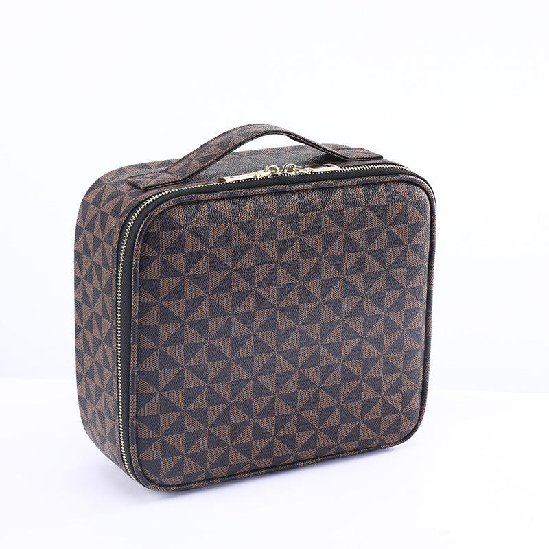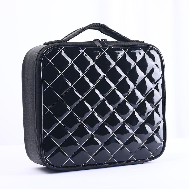 Trousse de Maquillage à Motif Treillis avec Séparateurs, Étui de Rangement Multifonctionnel pour Cosmétiques, Conception avec Poignée Souple et Housse de Protection