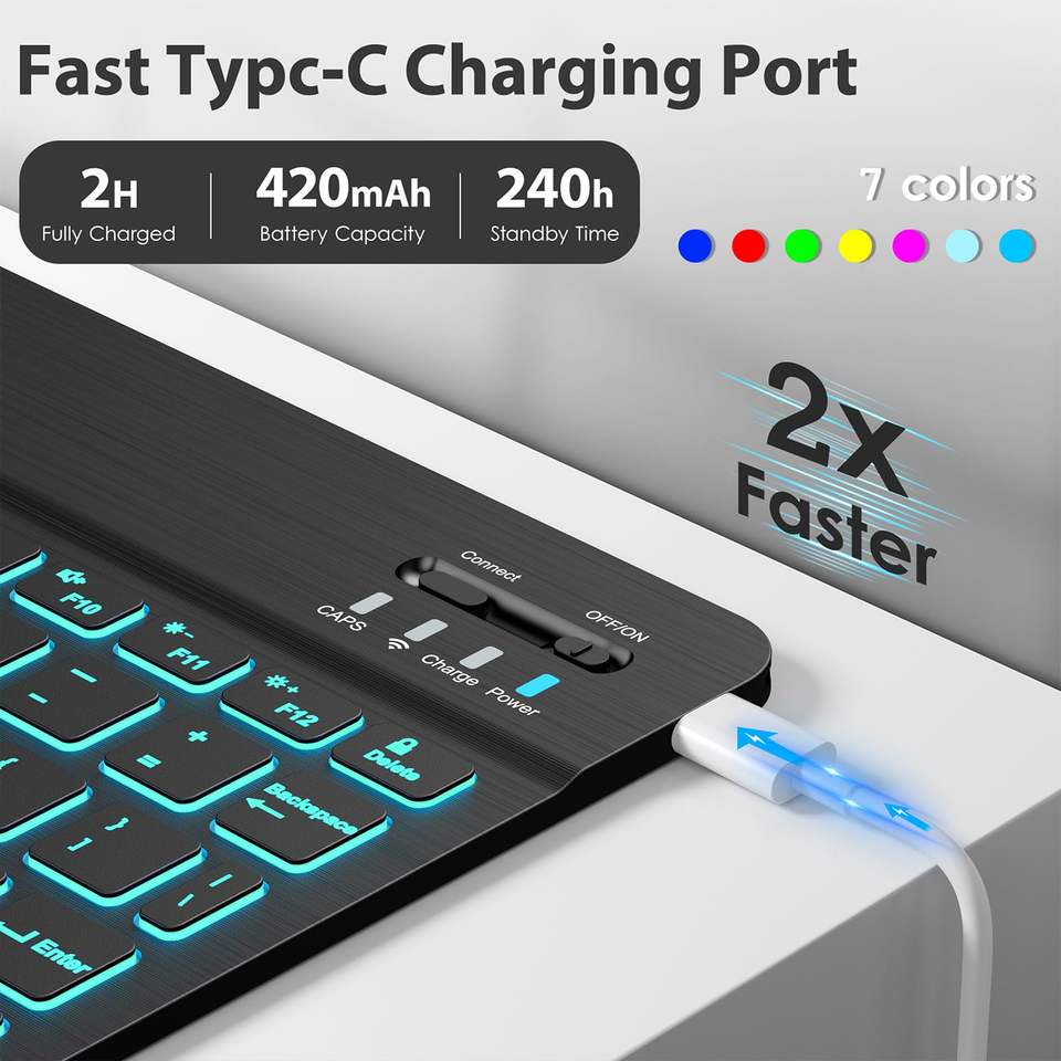 Laudtec pour iPad 11ème A16 étui avec clavier rétro-éclairé sans fil détachable clavier cuir Folio couverture avec poche porte-crayon