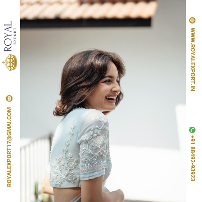 Lancement exclusif du fabricant de collection de saris de séquence de travail de fil fantaisie papillon Mono Net par Royal Export à Surat Gujarat