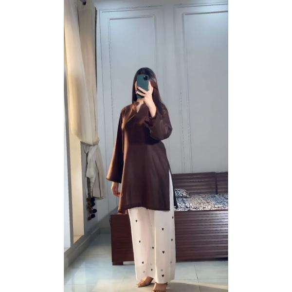 Exclusive Readymade Top-plazzo Collection Women's Floor-Length Roman Silk Salwar Kameez Embroidery Work Full Stitched Regular