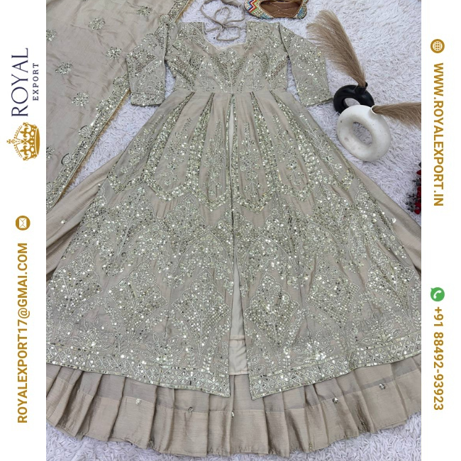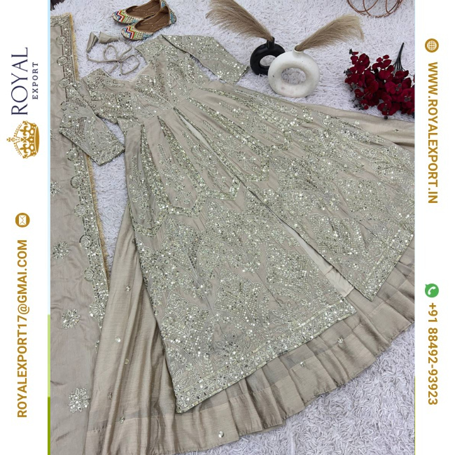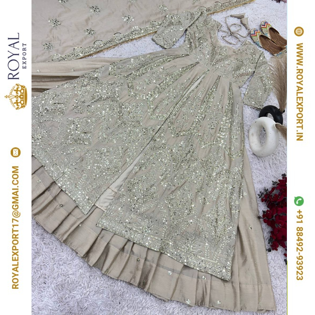 Lancement d'une nouvelle robe de soirée de marque Full Heavy Embroidery Sequence Work Suit Collections By Royal Export In Surat Gujarat