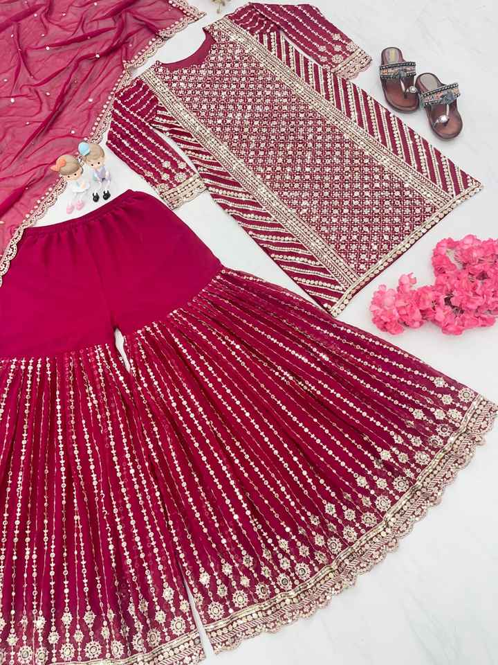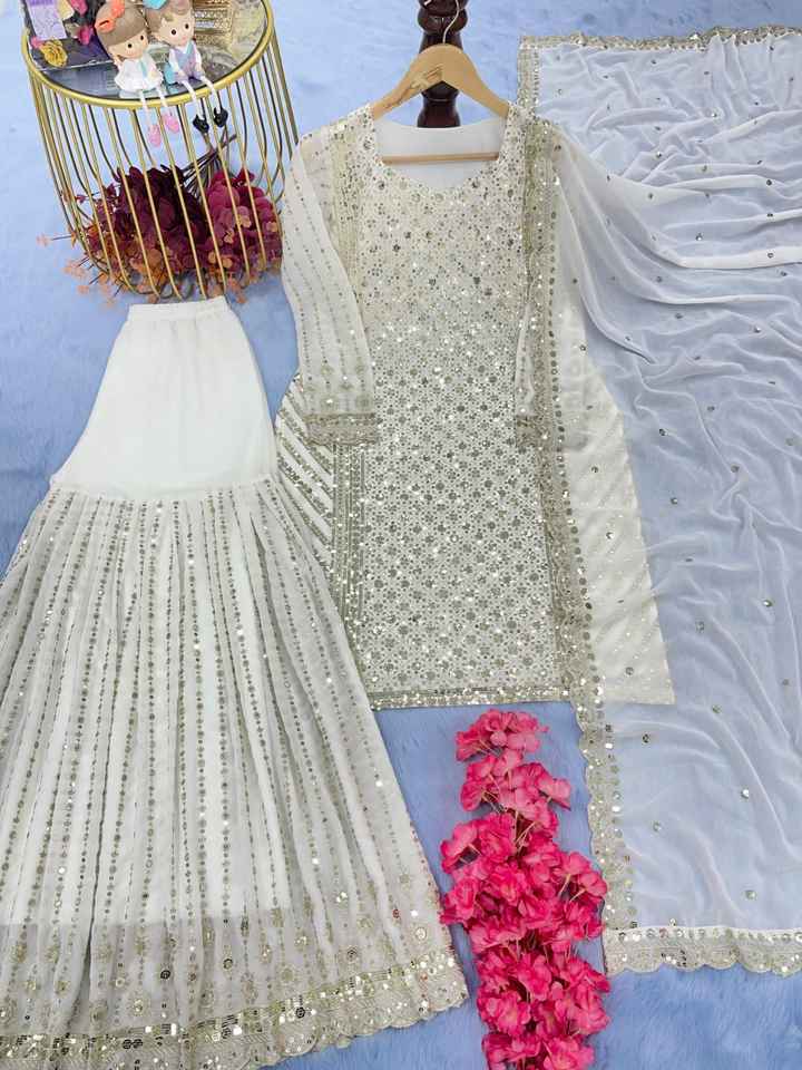 Lancement du nouveau modèle Party Wear Look Top Pant And Dupatta Set Heavy Faux Georgette With Heavy Embroidery Sequence Work Dress