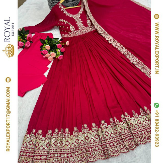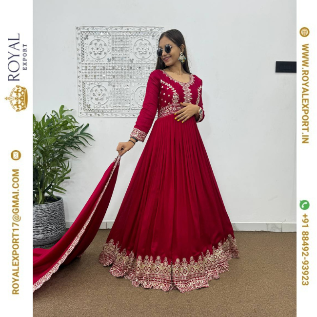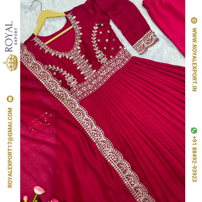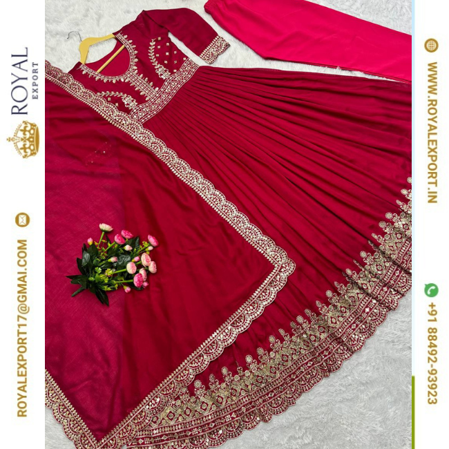 Lancement d'une nouvelle robe de soirée de créateur Look Vichitra Silk Beautiful Embroidery And Sequins Work Long Gown - Pent With Dupatta