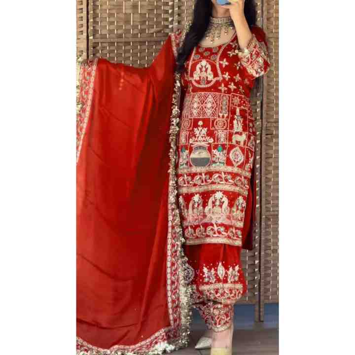 Lancement du nouveau Top de vêtements de soirée design Dhoti Salwar et Dupatta avec broderie et séquence
