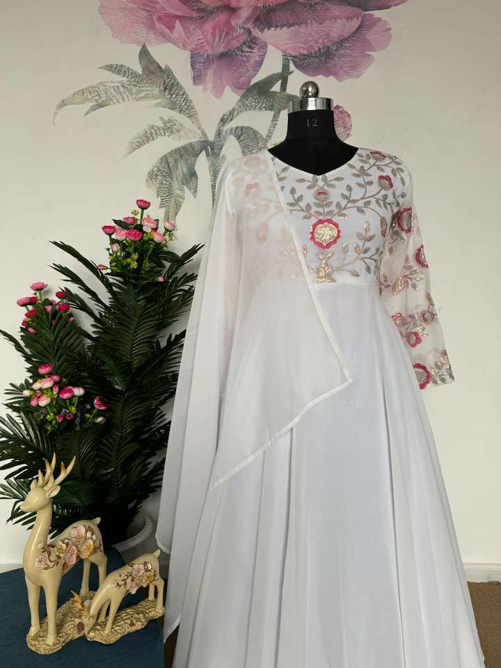 Lancement de la nouvelle robe de soirée de créateur Look Fancy Style Digital print Gown dupatta avec bas Belle robe de qualité supérieure