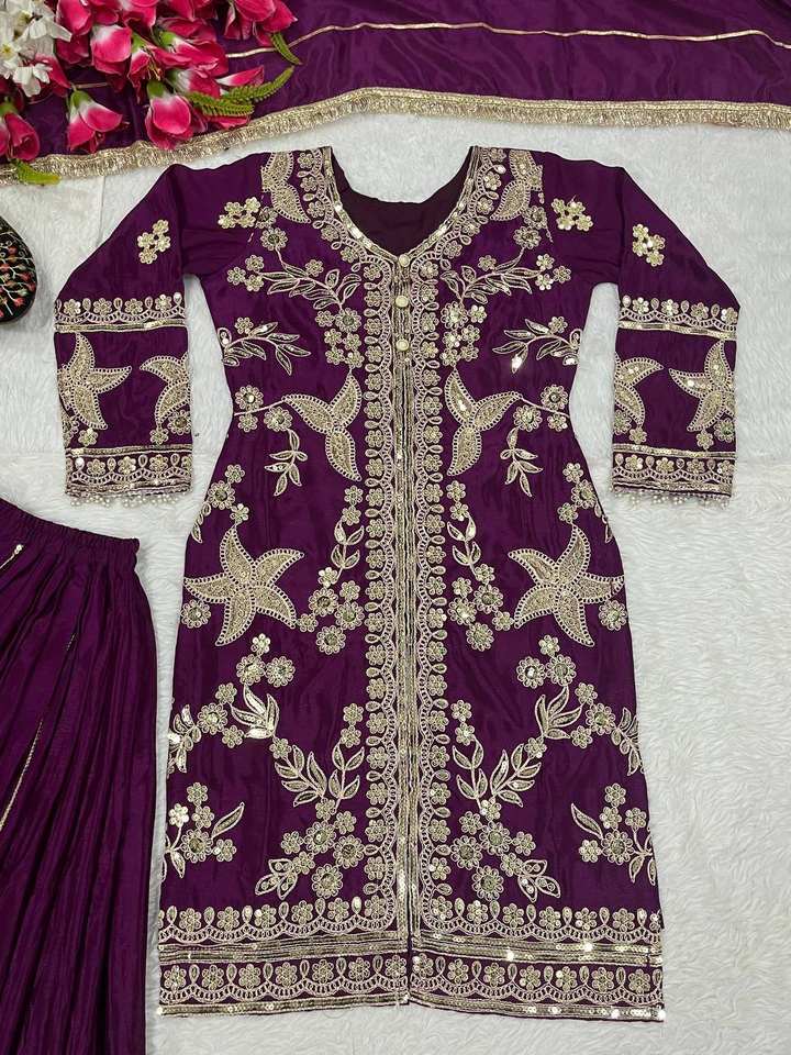 Lancement d'un nouveau designer traditionnel fête porter Look Top Sharara Dupatta lourd Chino codage séquence broderie travail