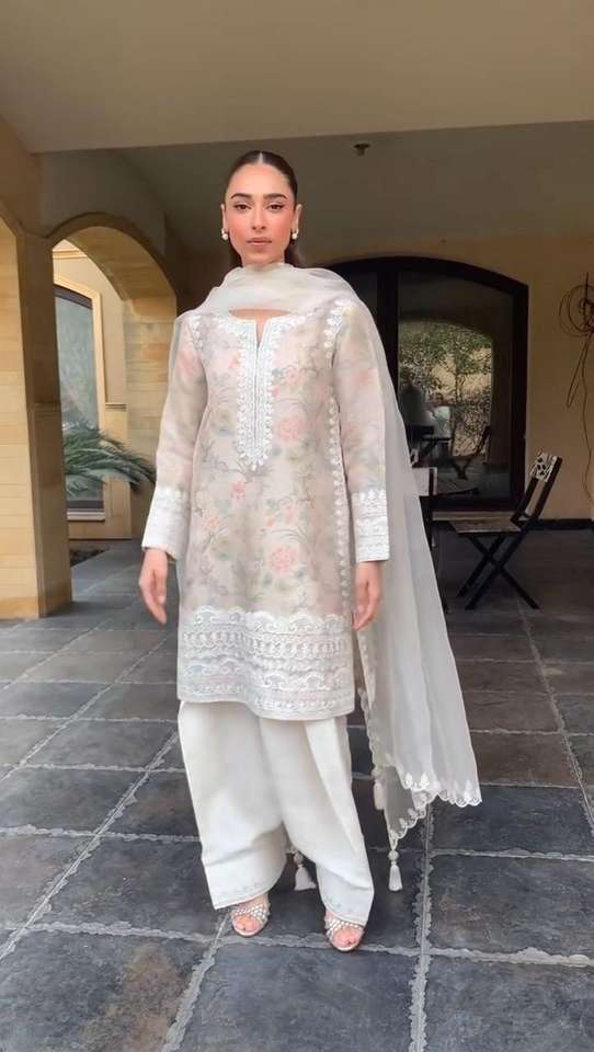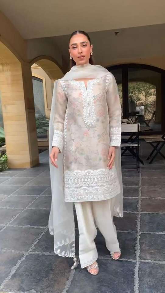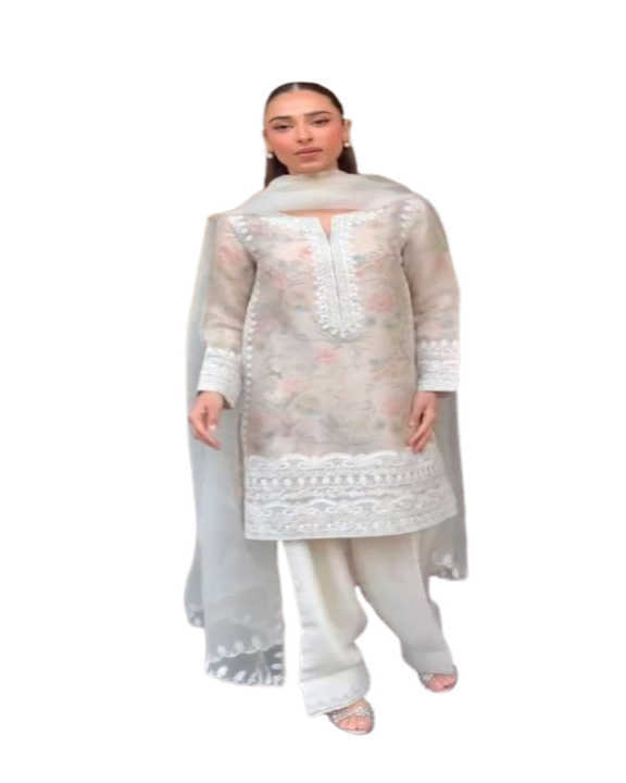 WROK:PRINTED TEBI ORGENZA WITH EMBROIDERY WORK
