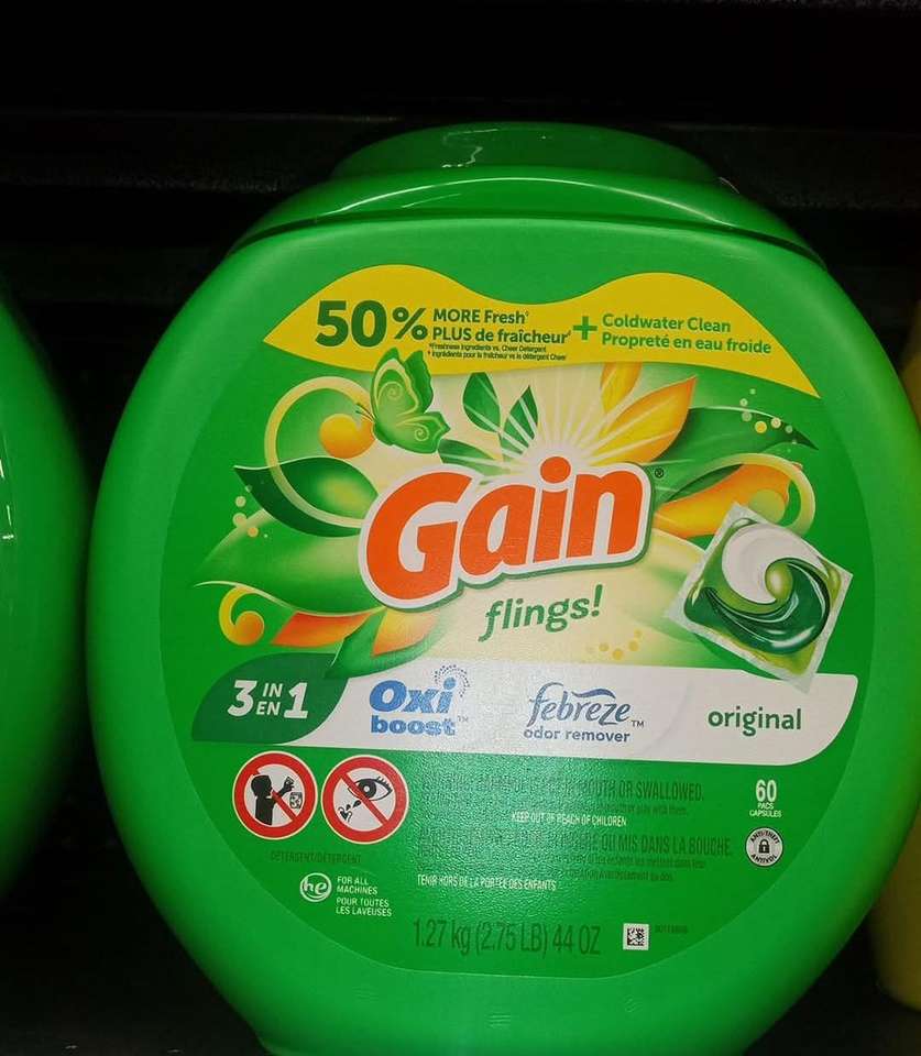 Détergent à lessive Gain Model Liquide 15 capsules/Gain All-In1 Tub Plastique X1 477G Parfum Lavande Plus de 80% de contenu