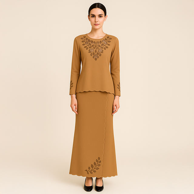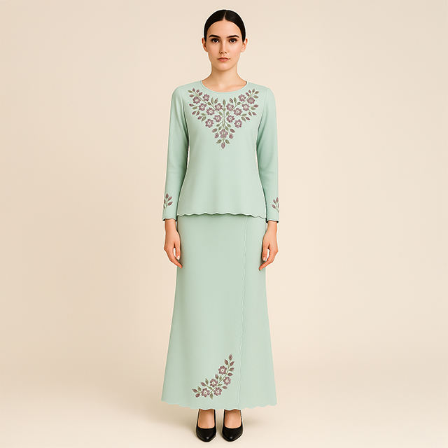 Lavender Bloom Luxe Moden Set Cascading Floral Embroidery High Neck BAJU KURUNG Modest Style Plus Size Breathable Wedding