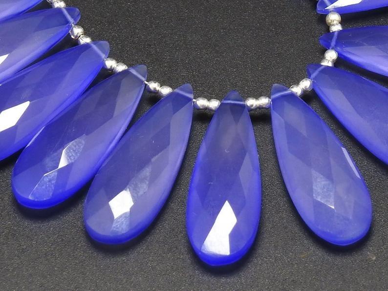 Perles en chalcédoine bleu lavande facettées en forme de larme 30X10MM Pierres précieuses en vrac pour la fabrication de bracelets Argent violet PME GemsBeads Troisième