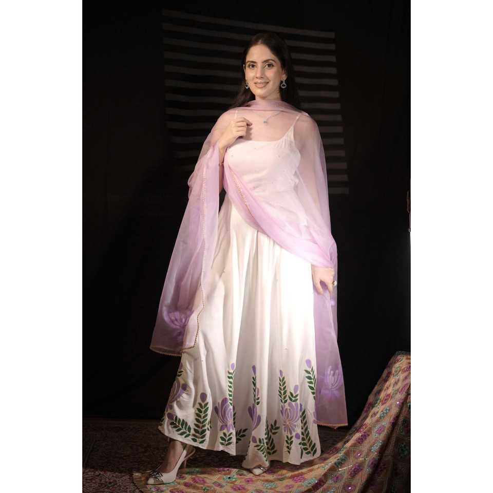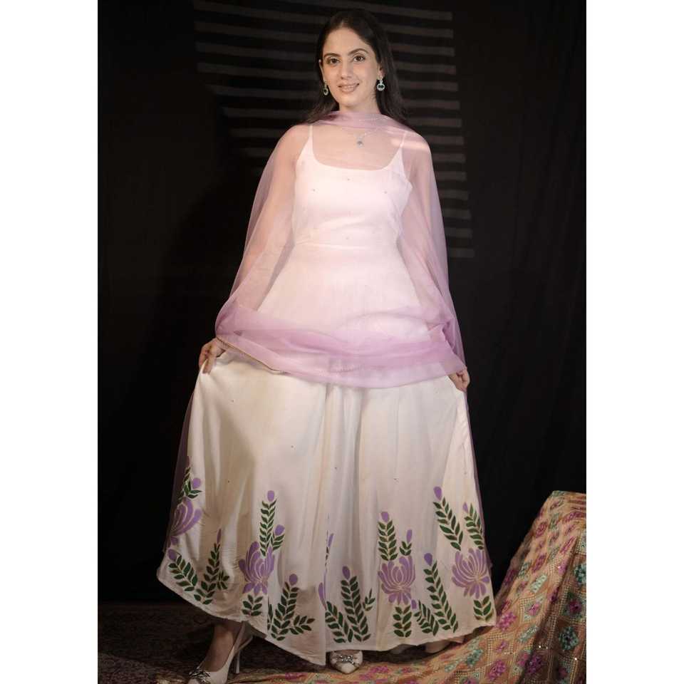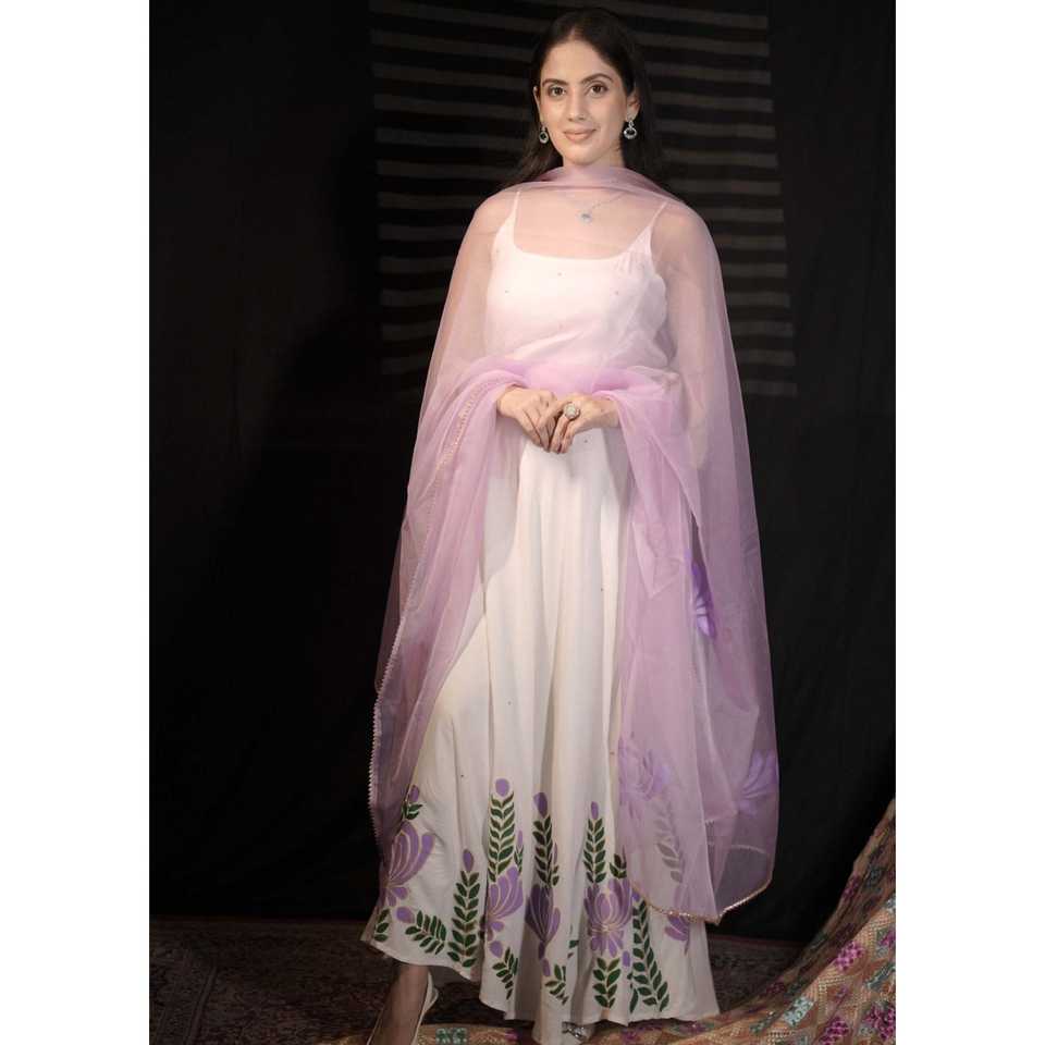 Ensemble de costume en mousseline de soie blanc lavande pour femmes, taille XS, avec décoration brodée