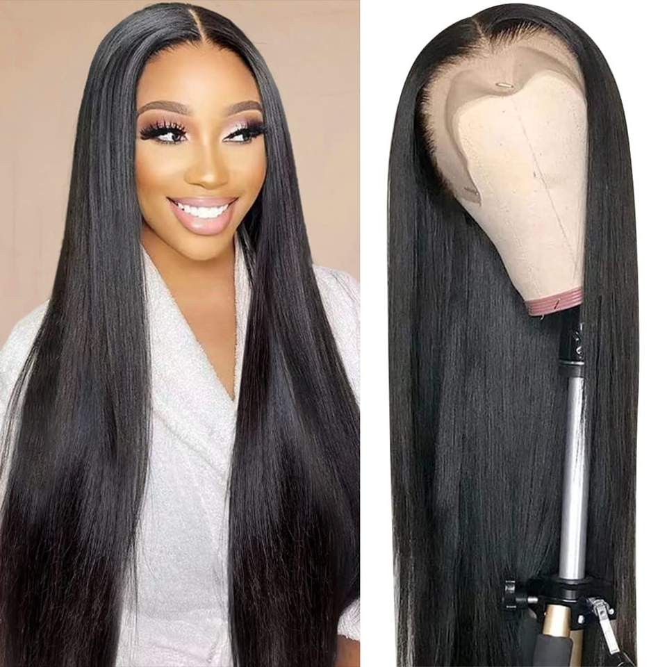 Somptueux beauté longue ligne droite 4-40 pouces perruque de cheveux humains brésiliens avec fermeture à lacet 5x5 perruque transparente à lacet HD pré-plumée
