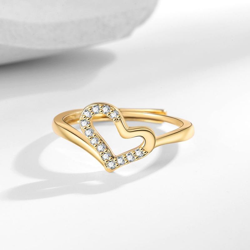 Bague ajustable inspirée du cœur, finition argentée, style moderne minimaliste, bague ouverte ajustable, bijoux de mode