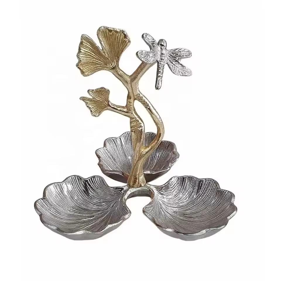 Bol décoratif de luxe à motif palmier, finition argentée, poignée dorée, idéal pour la décoration intérieure, centre de table et l'organisation d'événements