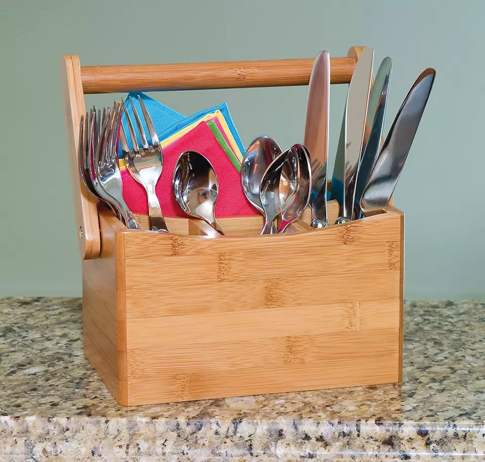 Nom du produit:Couverts en bois Caddy avec poignée pliante