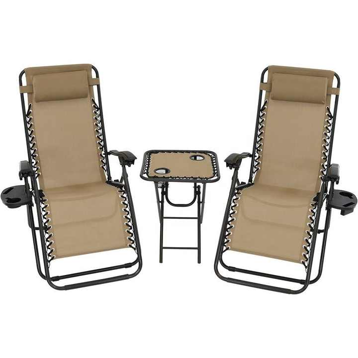 Vente en gros d'usine de patio et jardin Pelouse Chaise relax bon marché Camping zéro gravité Chaise inclinable pliante 2 transats de plage et 1 ensemble de table