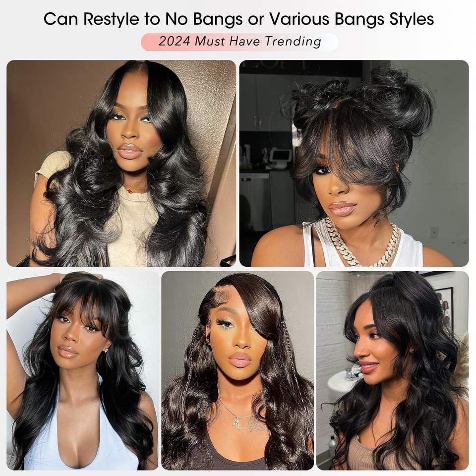 Rideau en couches frange visage encadrement 6X6 perruque sans colle cheveux humains HD dentelle lâche vague de corps dentelle avant perruques