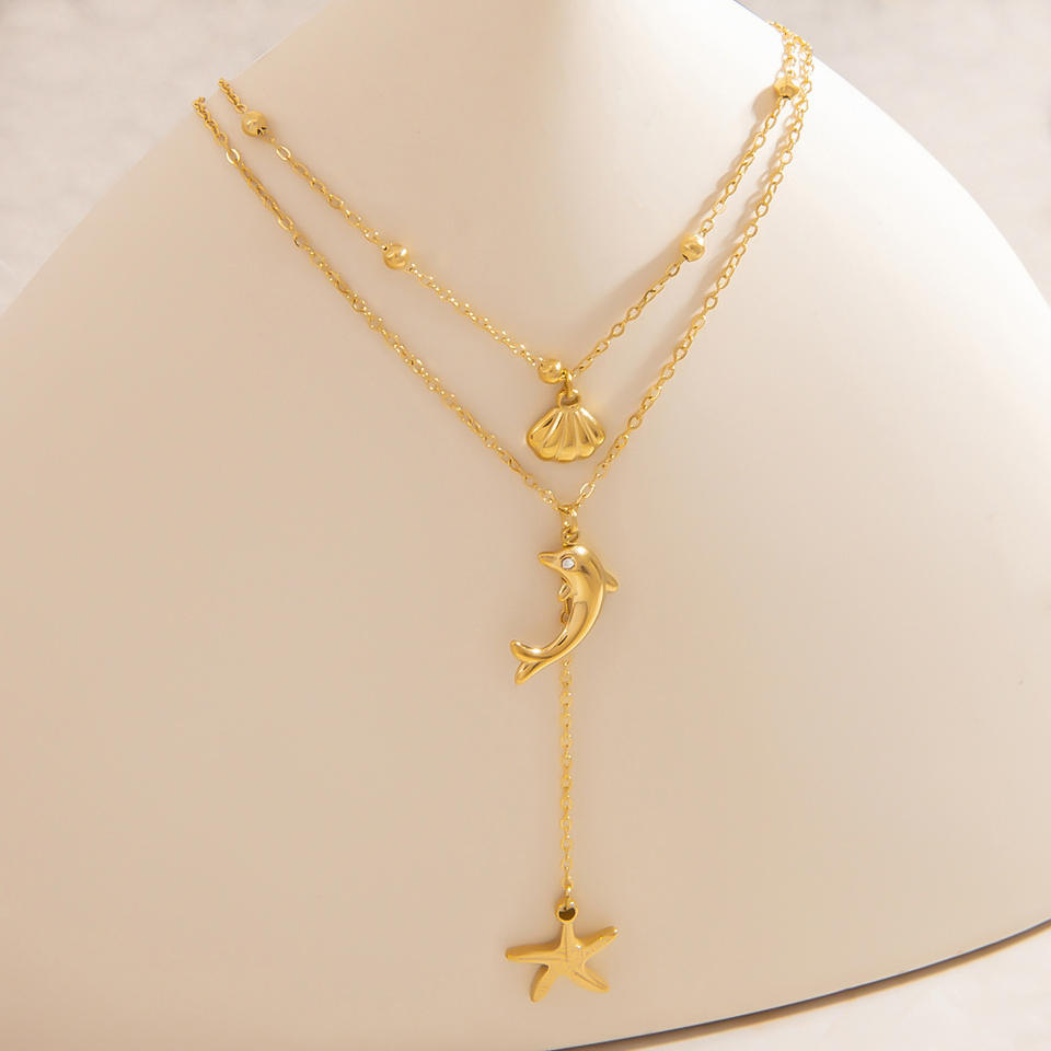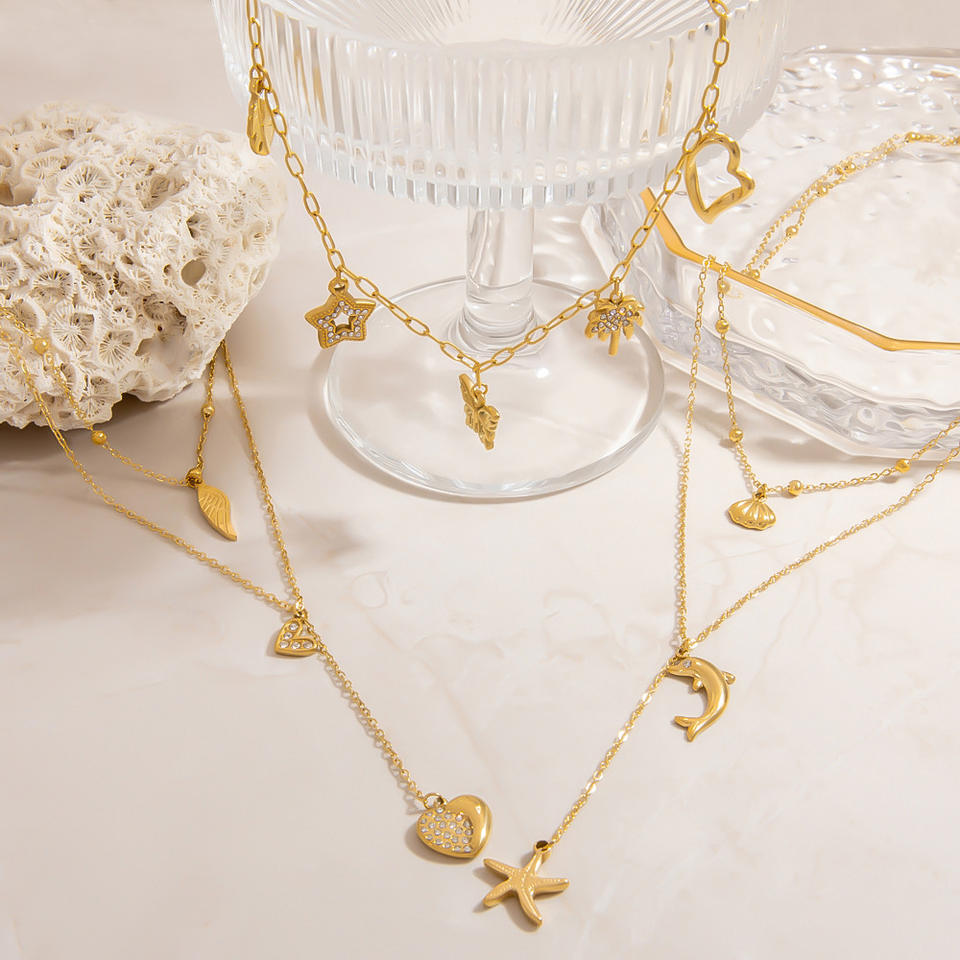 Collier superposé en or avec pendentif étoile et lune serti clos, ras-de-cou multicouche, idéal pour un cadeau, bijoux de mode