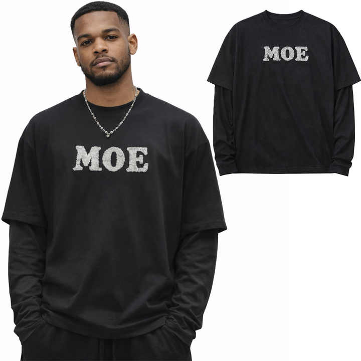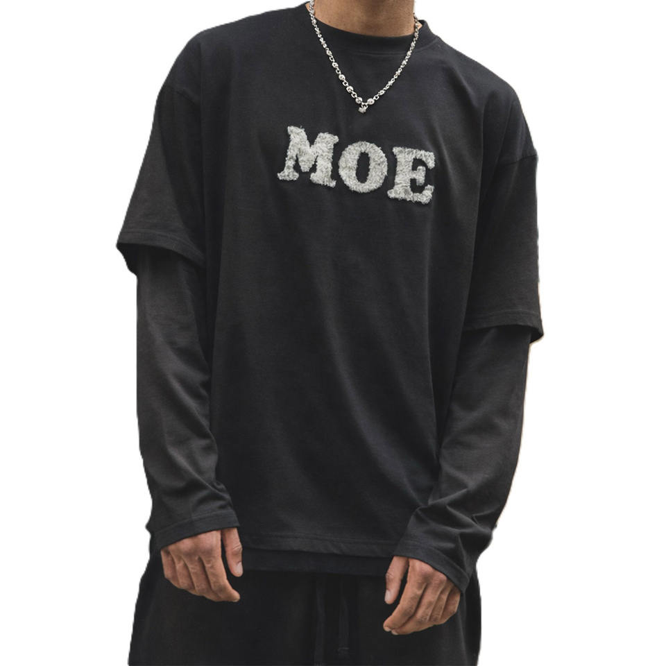 T-shirts superposés à manches longues pour hommes, style streetwear, en coton, coupe oversize, broderie chenille, pour hommes, vêtements en gros, production OEM