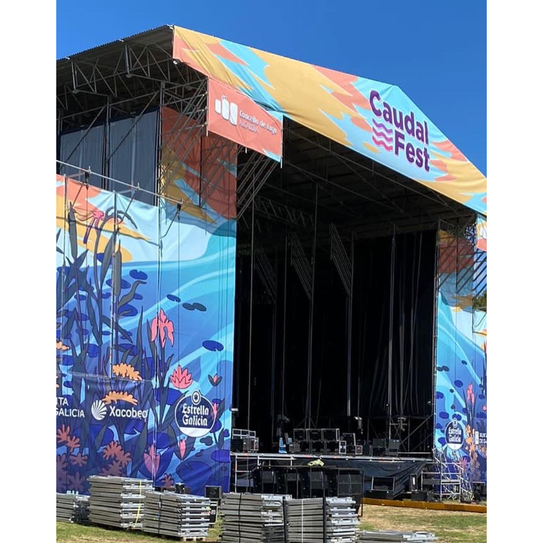Installation d'escaliers modulaires Layher pour un accès sécurisé lors d'événements et de montages techniques