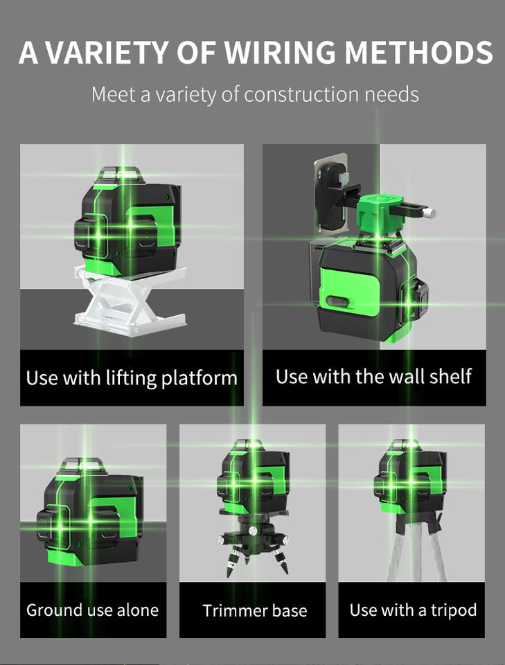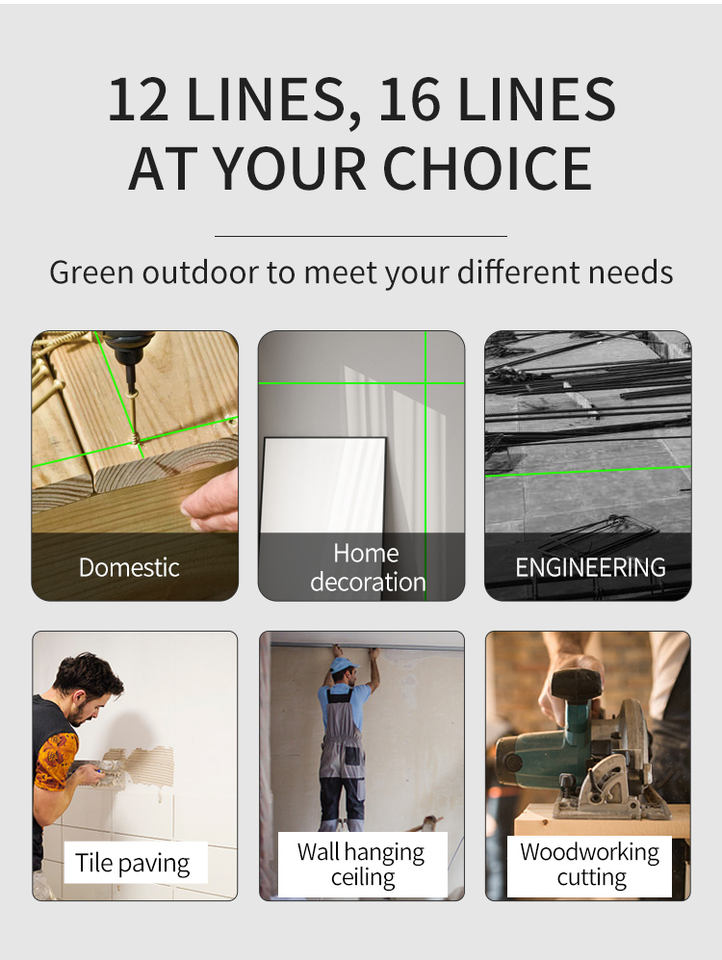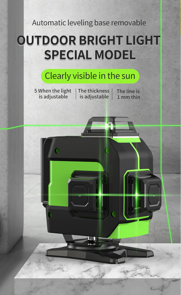 Niveau Lazer 16 lignes faisceau vert Laser croix auto-nivelant 3D Auto Rotary Construction Nivel pour le bricolage et l'utilisation industrielle