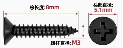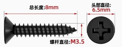 LeGood M3.0M3.5 Self-Tapping Screw Nickel Plated Carbon Steel Cross Recessed PH Countersunk Head Black Oxide Finish Metric
