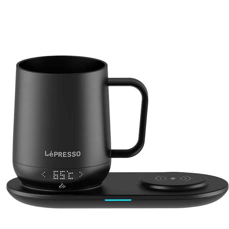 Mug chauffant intelligent LePresso avec base de charge sans fil, affichage en temps réel, contrôle de la température, conception en acier inoxydable anti-fuite
