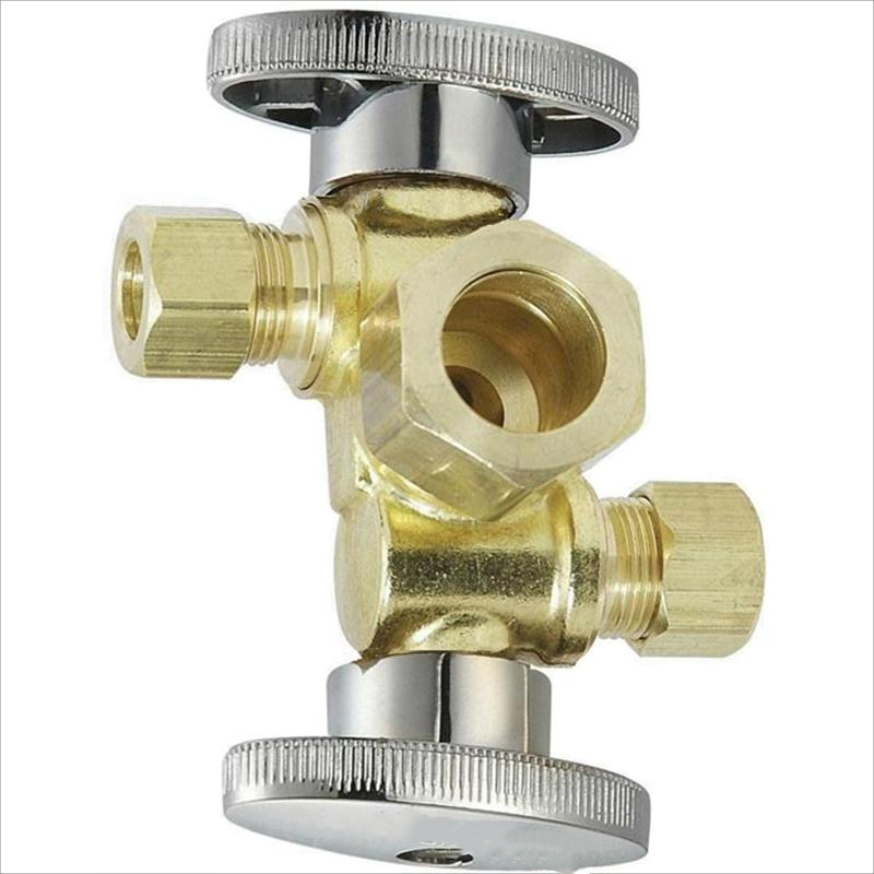 Vanne d'arrêt d'angle de compression à double sortie sans plomb à 1/4 tours avec deux vannes d'arrêt/poignées pour le contrôle de l'eau