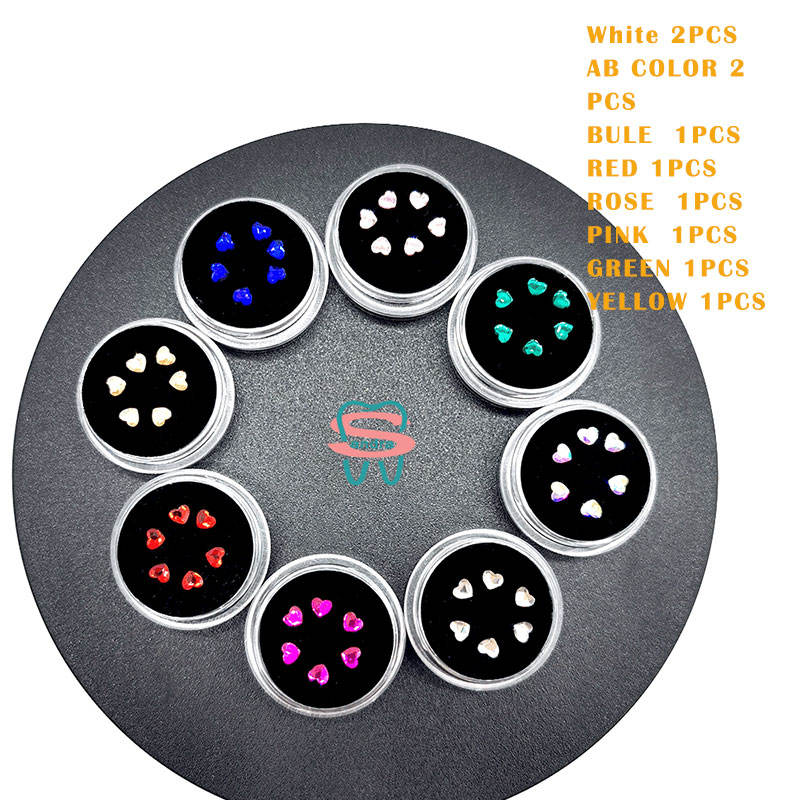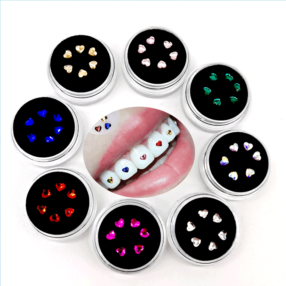 Bijoux de dent en forme de coeur sans plomb 10 boîtes gemmes de blanchiment des dents multi-usages avec lampe de polymérisation et colle
