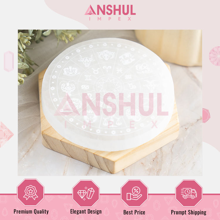 Product Name:4 inches Zodiac Selenite Round Plate