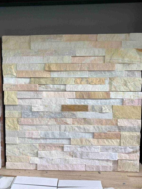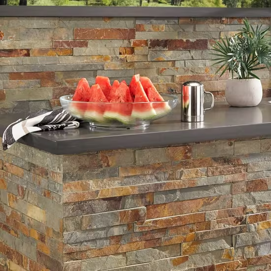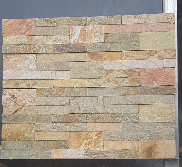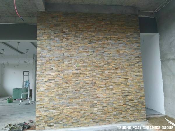 Panneaux de revêtement mural en ardoise jaune terreux empilés, sélection de qualité supérieure, durables, écologiques, pour villas et complexes hôteliers de luxe