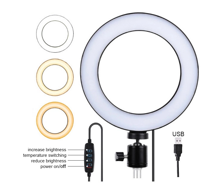 Leadingplus — éclairage annulaire Led 8 pouces, avec trépied, connexion USB, pour Selfie, maquillage, en direct, Tik Tok