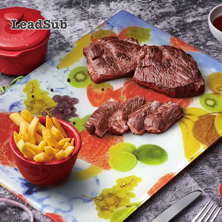 Planche à découper en verre trempé blanc Leadsub Clear Sublimation, antidérapante, solide, grande planche à découper en verre avec rebord pour la cuisine