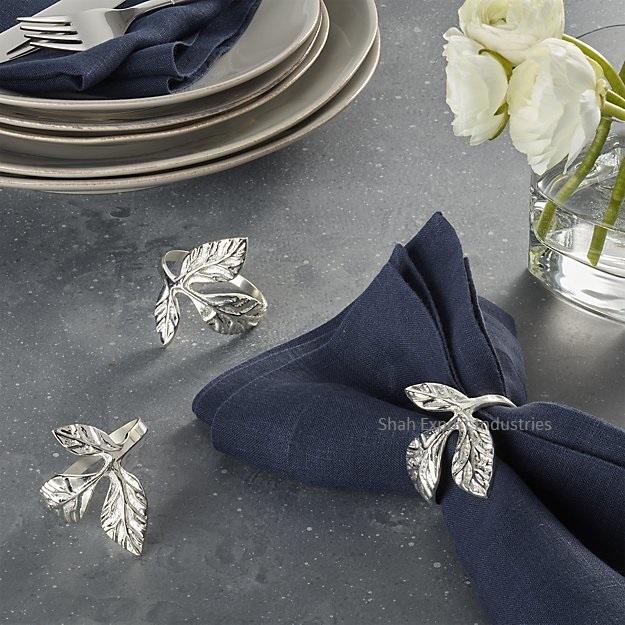 Anneaux de serviette en métal Design feuille argent plaqué porte-serviettes de luxe pour les dîners de mariage vaisselle décoration