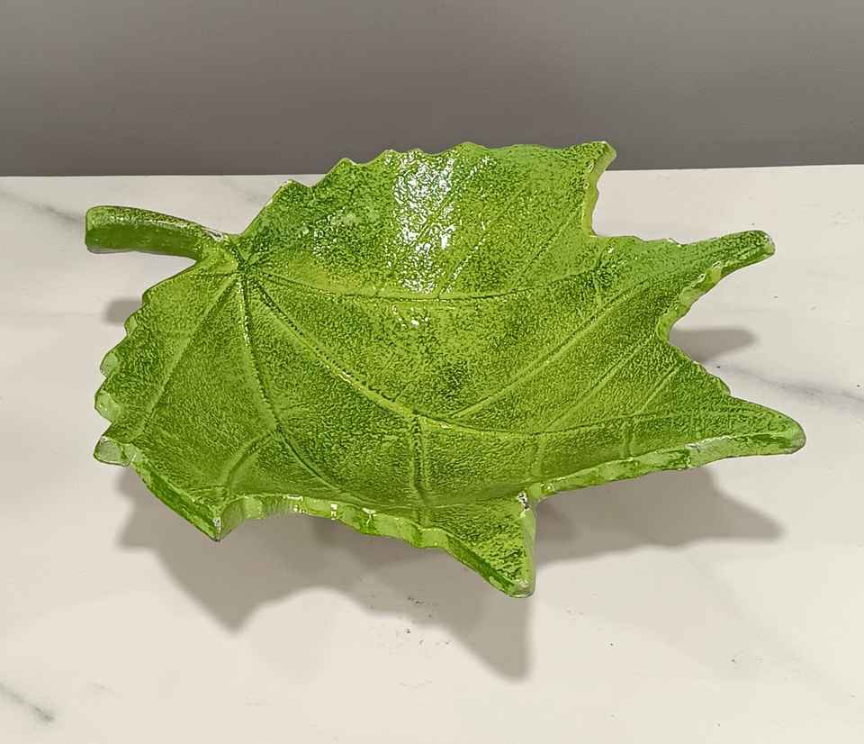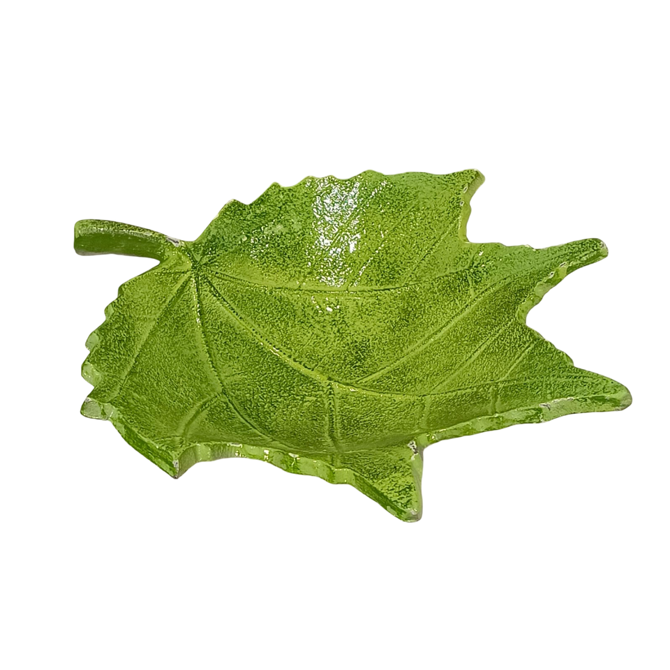 Plateau de service en aluminium avec design en forme de feuille, couleur foncée, finition et taille personnalisables en vert, pour la maison