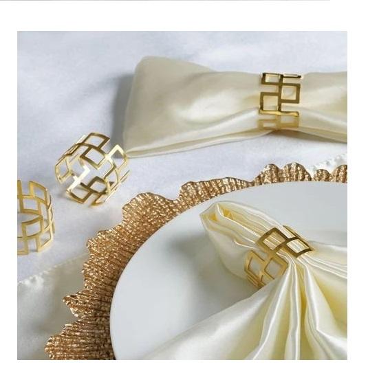 Design de feuille anneaux de serviette décoration de Restaurant de mariage utilisation de la salle à manger métal rond en acier inoxydable or anneaux de serviette de Table 2023