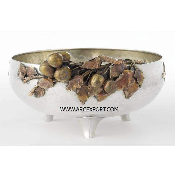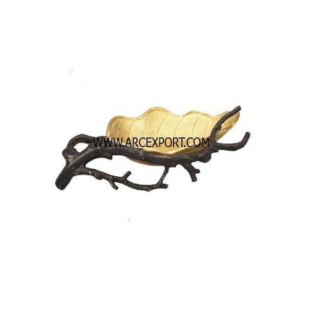 Bol à fruits secs plaqué or avec conception de feuilles avec support de base de branches d'arbre