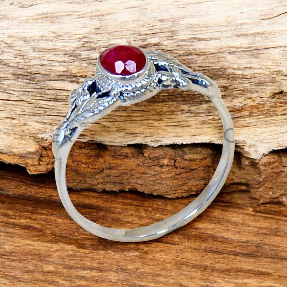 Bague à motif floral en argent sterling 925 avec rubis naturel, faite à la main, prix de gros, bijoux