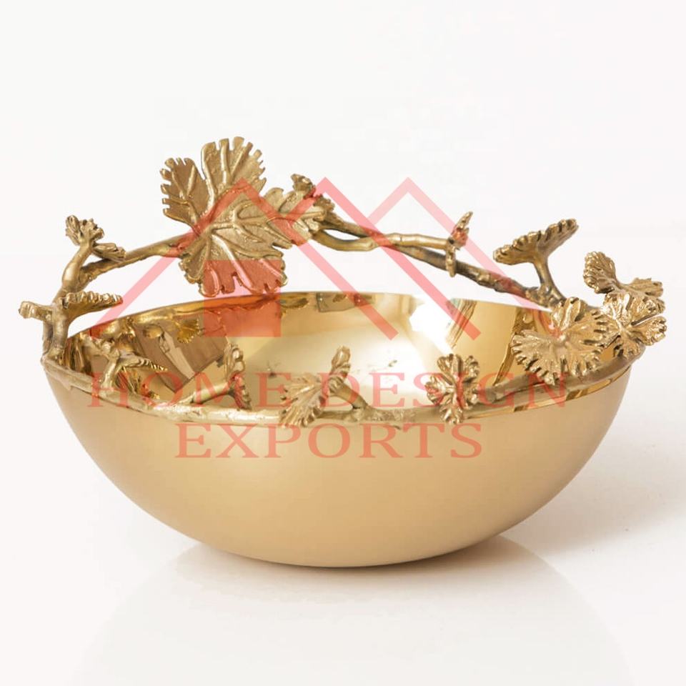 Supports de feuilles pour la décoration intérieure/bol décoratif en métal pour aliments secs à vendre bol en métal décoratif pour affichage de feuilles de raisin avec branche d'arbre