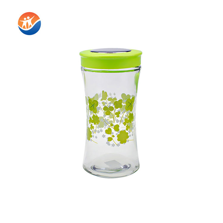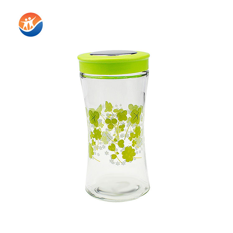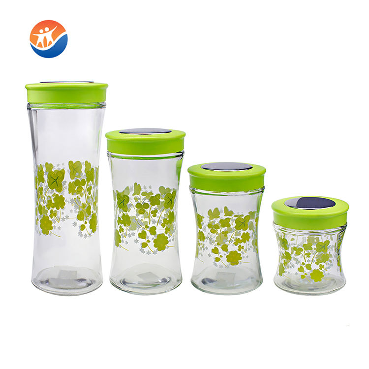 Nom du produit:Bocal de conservation en verre avec couvercles en métal et autocollants feuilles