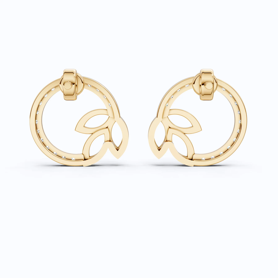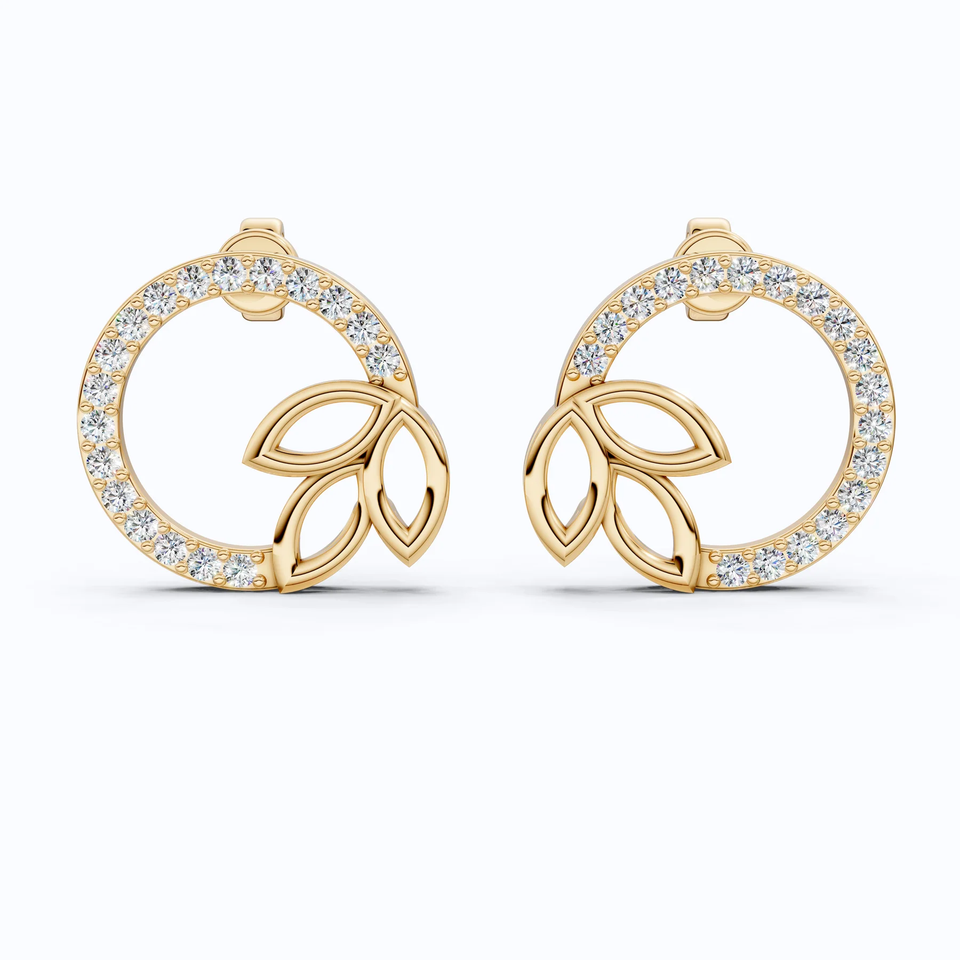 Boucles d'oreilles clous en or massif 14K plaqué rhodium, motif cercle couronne de feuilles, diamants de laboratoire 0,29 CT.T.W certifiés IGI, luxe pour soirée