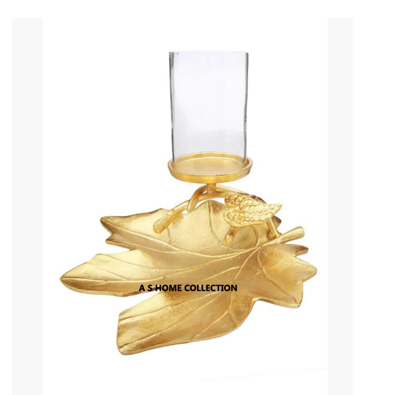 Bougeoir à finition dorée en métal aluminium au design feuillu Pot à bougie unique en béton parfait pour le salon élégant