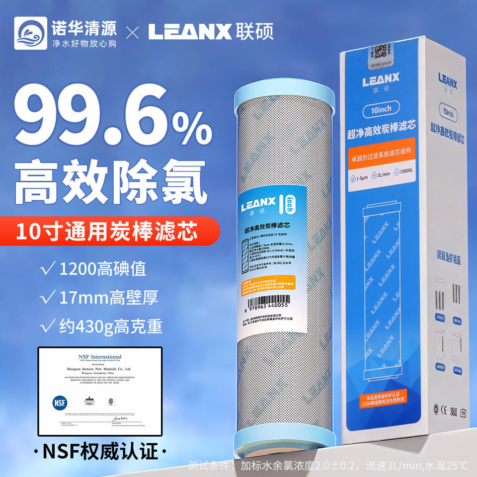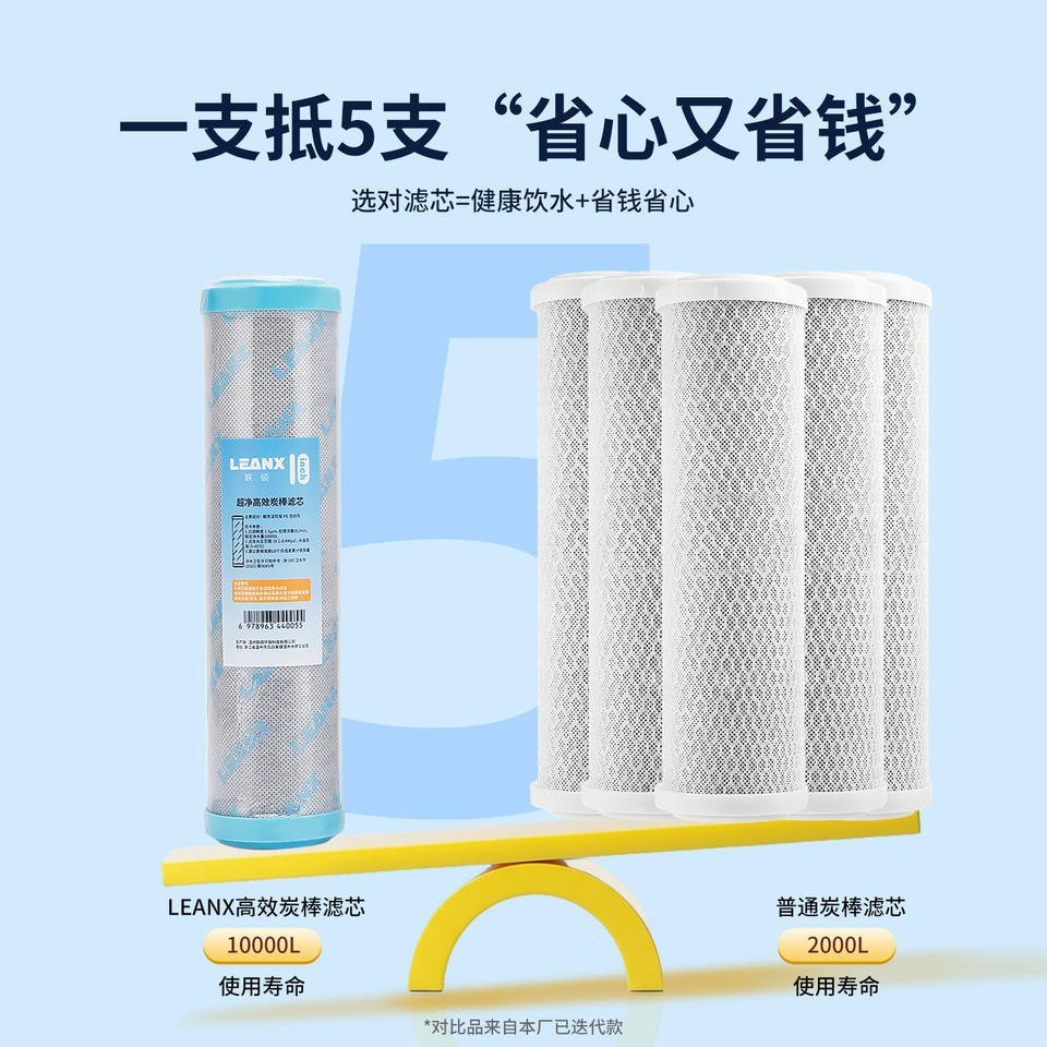 Cartouche filtrante à charbon actif Leanx 10 pouces, pièce de rechange pour purificateur d'eau haute efficacité