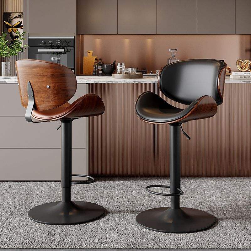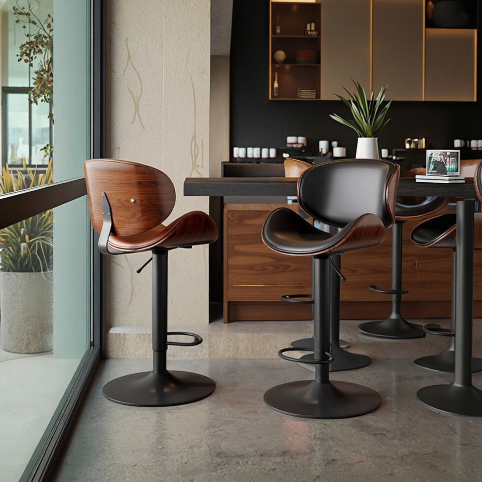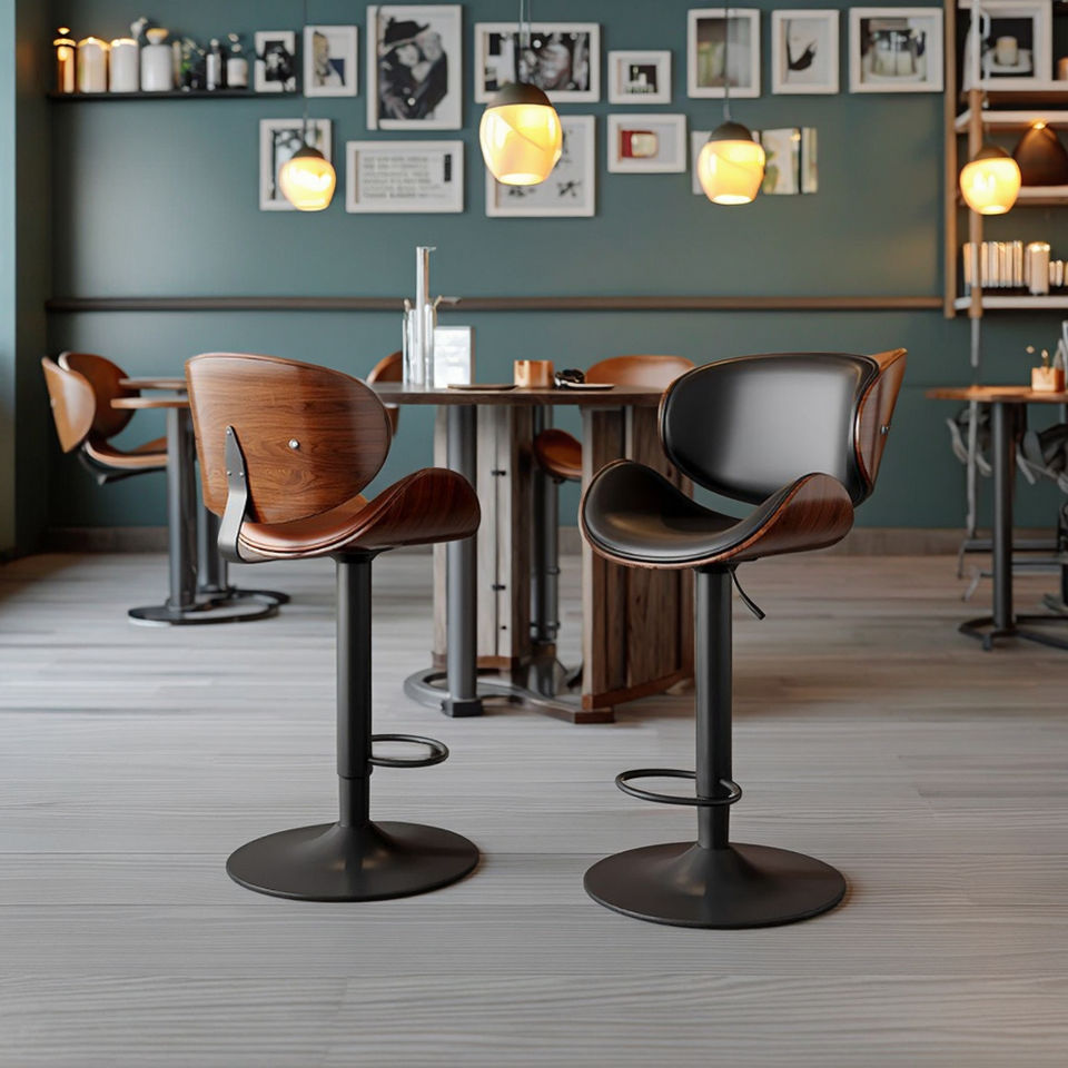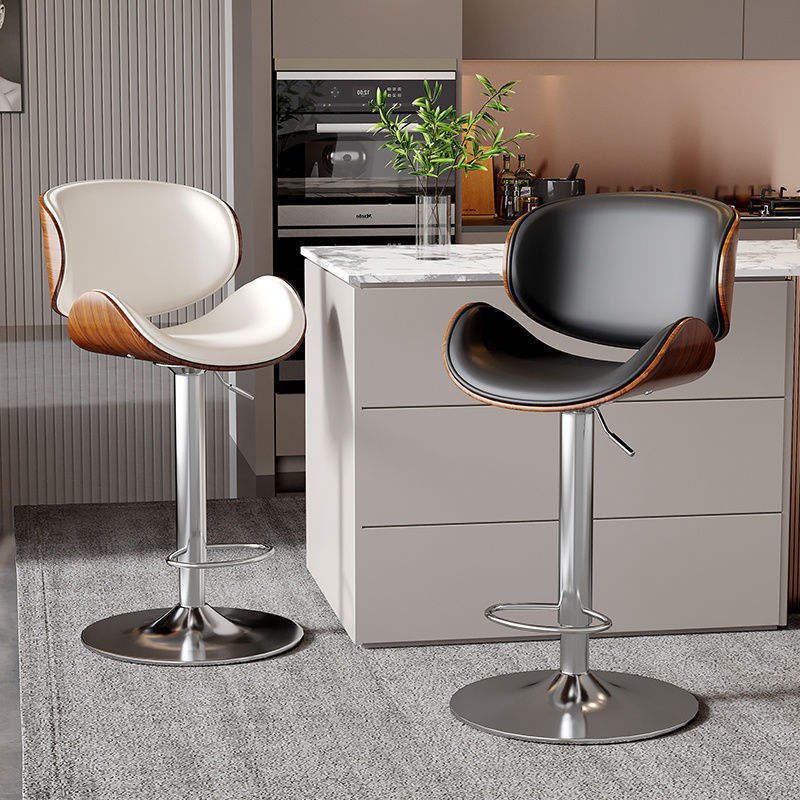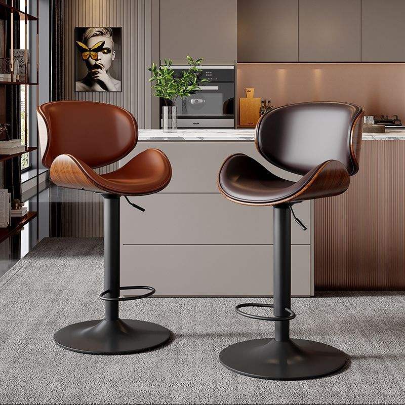 Tabourets de bar pivotants réglables en cuir Chaises de bar avec siège en PU Accent en bois moderne pour îlot de cuisine