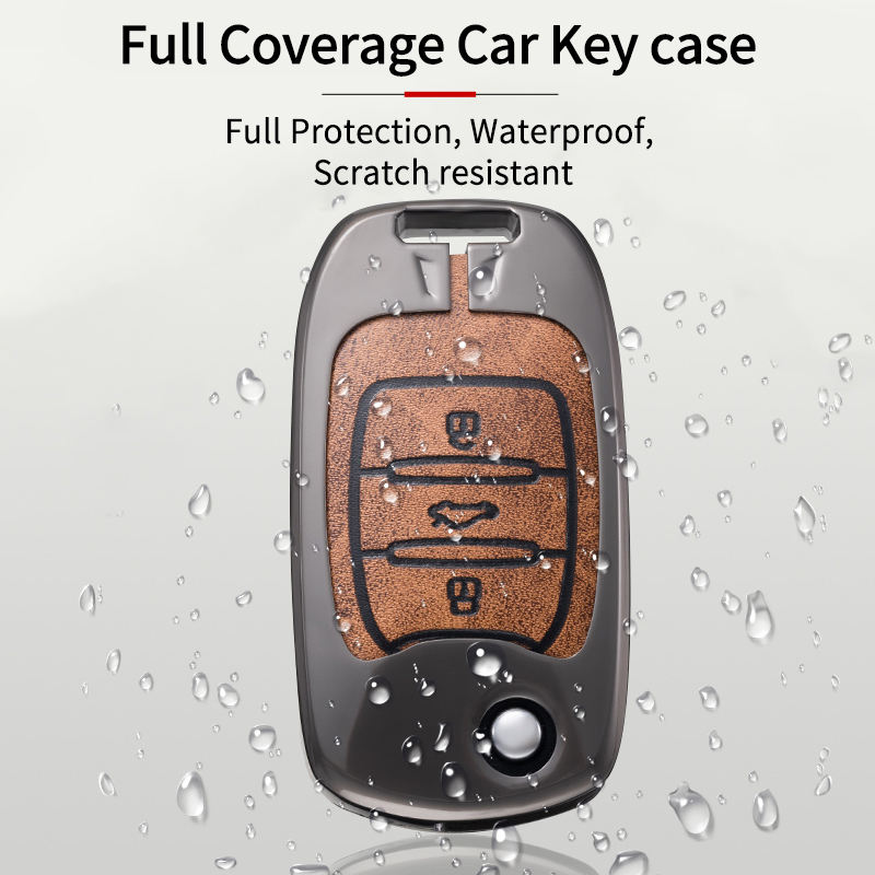 Porte-clé de voiture en cuir pour Wuling Mini EV 3 boutons porte-clé de voiture à distance porte-clés accessoires